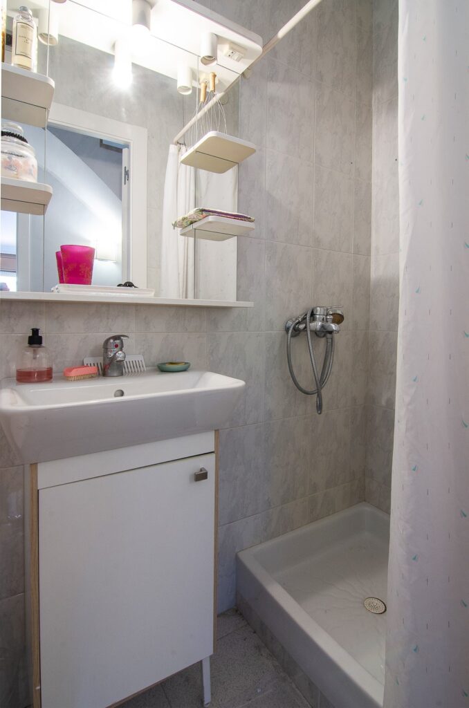 A través d´un bonic rebedor entrem a la primera planta, on trobem el saló menjador, lluminós, acollidor i amb sortida a una envejable terrassa de 20m2. Cuina impecable i totalment equipada. Un petit bany amb dutxa i un dormitori individual.