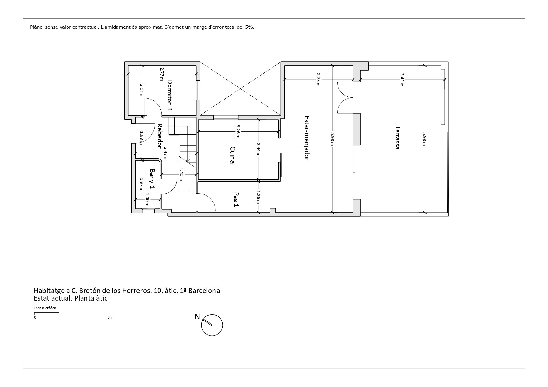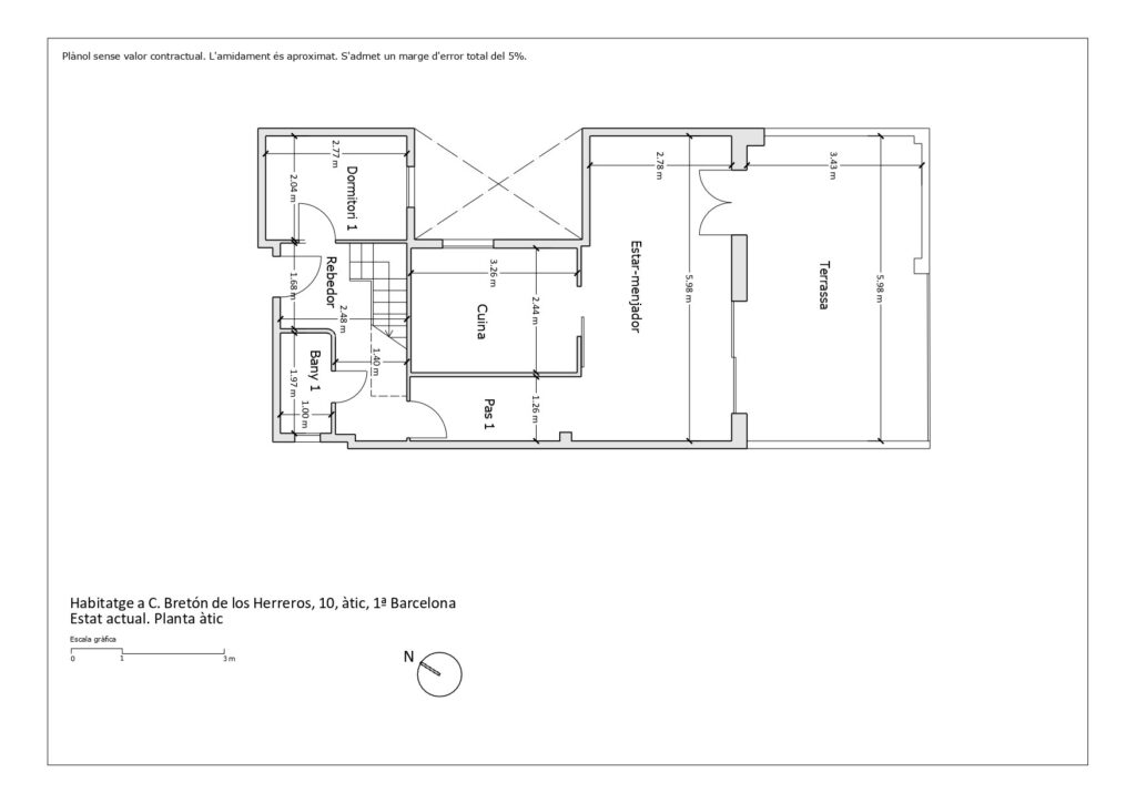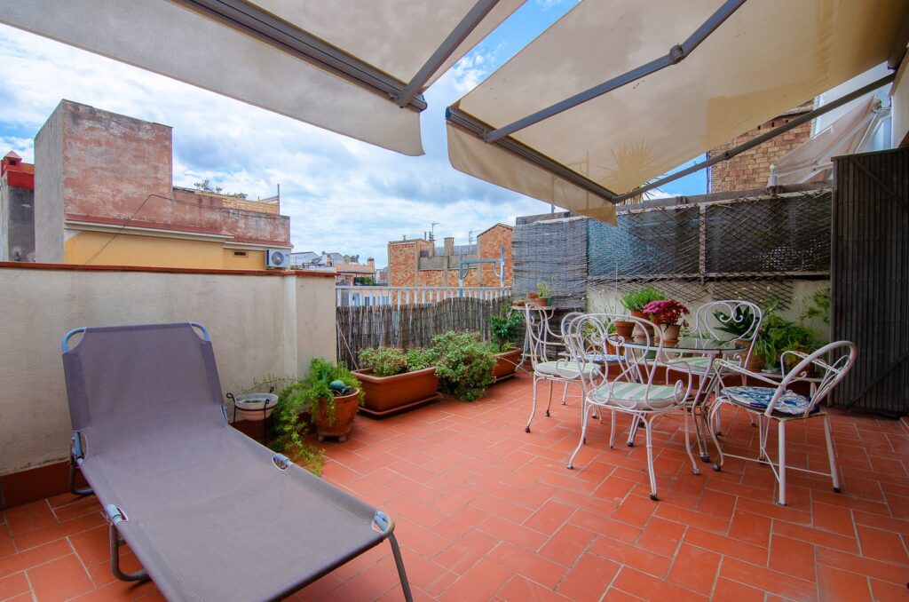 Al tranquil carrer Bretón de los Herreros, en ple cor de Gràcia, trobem aquest ampli i bonic àtic dúplex amb terrassa a finca de 1974 amb ascensor.