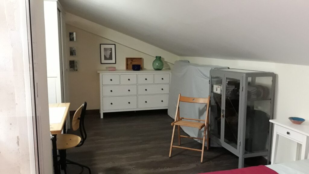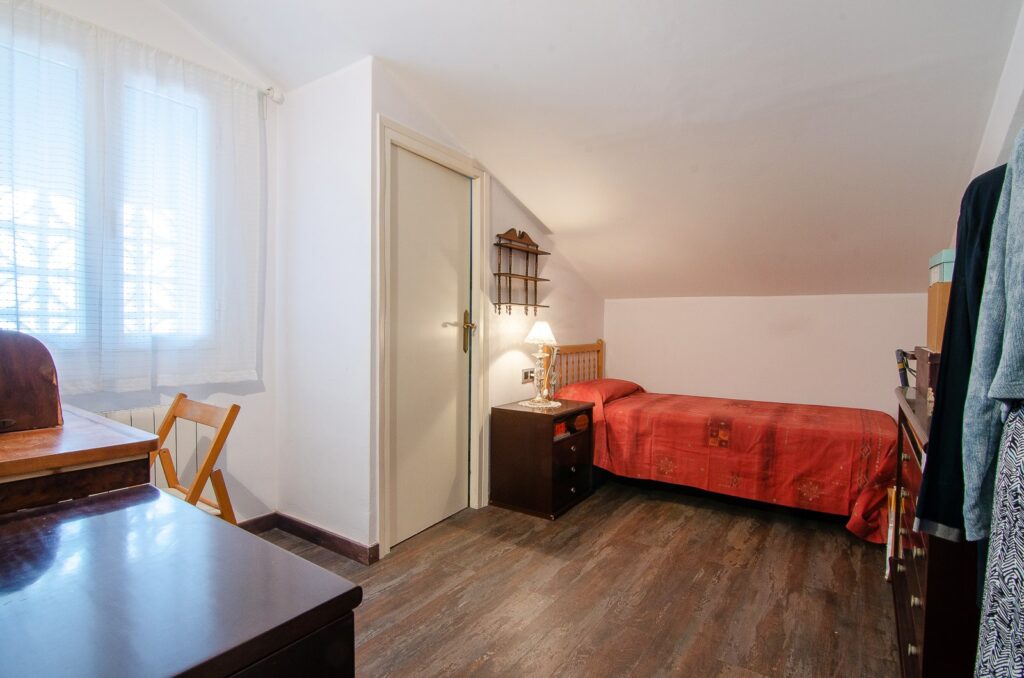 A través de les escales pugem a la segona planta, on trobem la zona de nit, composta per tres dormitoris dobles, un amb gran armari encastat i un altre amb vestidor, així com un ampli estudi golfes polivalents al qual se li poden donar diferents usos, des d’un despatx, sala de jocs o un gran cinquè dormitori. També tenim un segon bany complet a actualitzar amb sortida a una pràctica galeria